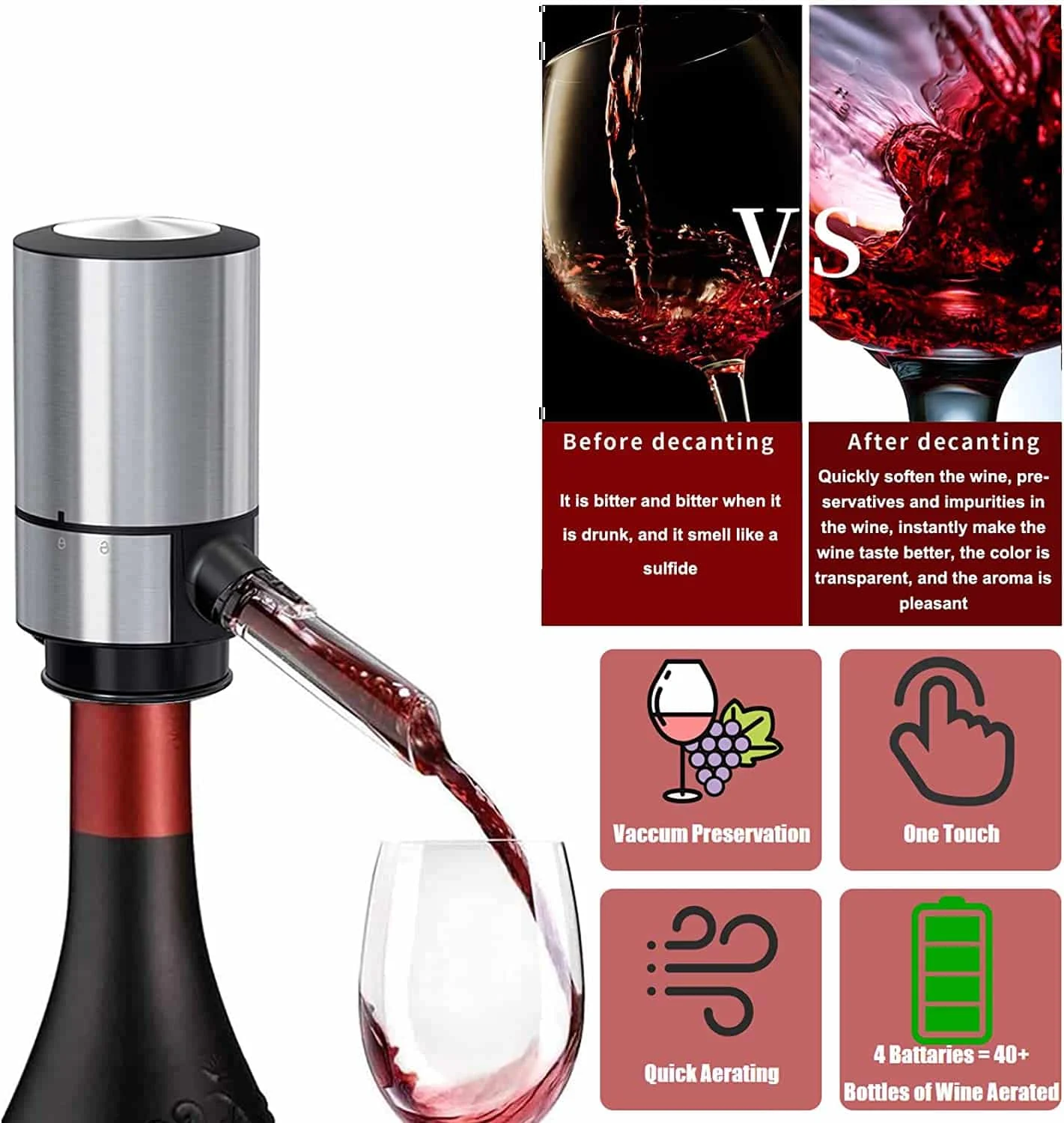 Electric Wine Aerator with a wine pump is delivered perfectly aerated wine straight to your glass. The wine aerator pourer spout design provides more air contact surface to speed oxidation instantly. The electric wine aerator pourer enhances much aroma and flavor into the wine.