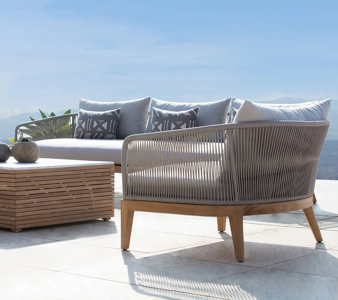 Brand Harbour Collection Avalon Finish Teak/Light Grey/Ateja Venao Size 2520 x 830 x 630 mm Type Sofa Material Teak/Fabric/Olephin Rope Weather Resistant Yes Removable Lining Yes Quick Dry Foam Padding Yes Arm Rest Material Rope/Teak Arm Rest Colour Light Grey Rope Material Olephin Rope Rope Colour Light Grey Backrest Fixed Seat 3 Seater Seat Height (mm) 380 High Durability Yes Cushion Included Cushion Material Fabric Cushion Colour Ateja Venao -