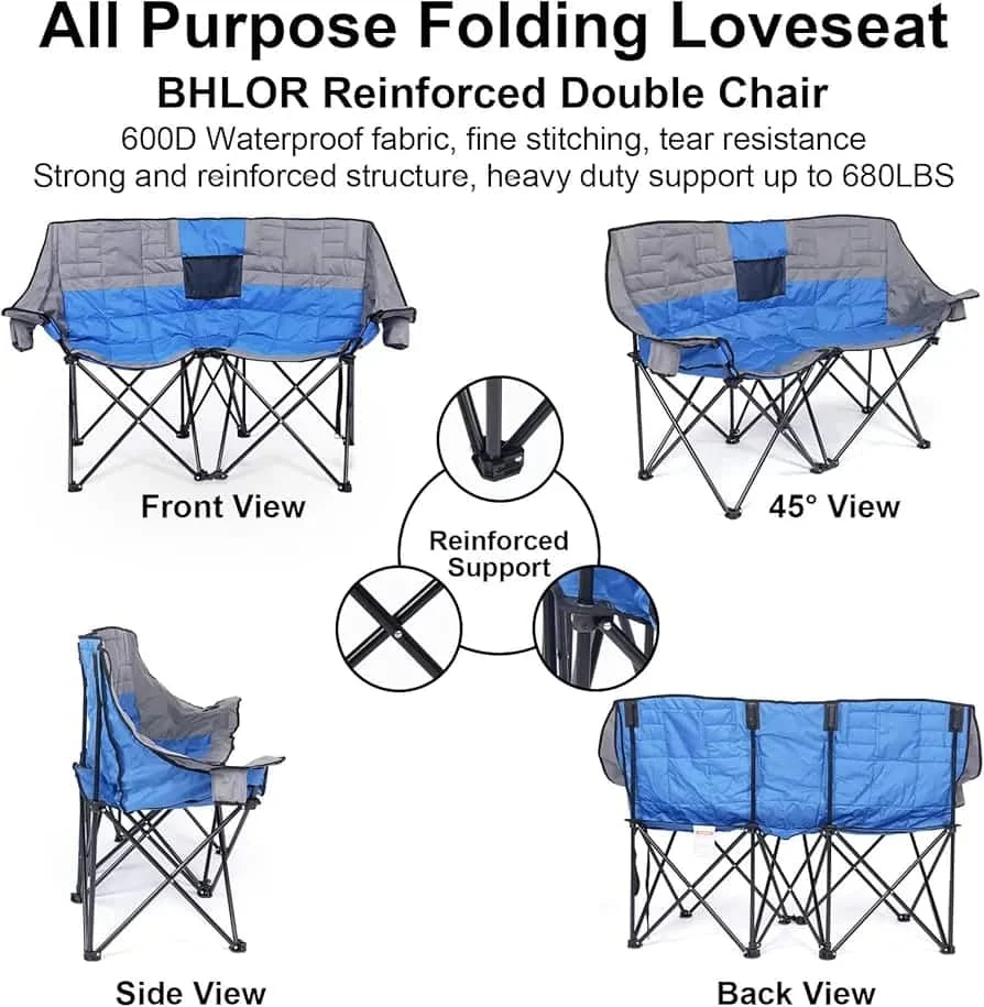 BHOLR Ourdoor Loveseat Folding Double Camping Chair