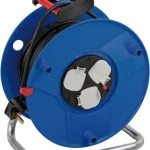 Small cable reel (240 V/13 A) with thermal cut-out protection against overheating and overloading, anti-dust and contamination self-closing socket cover