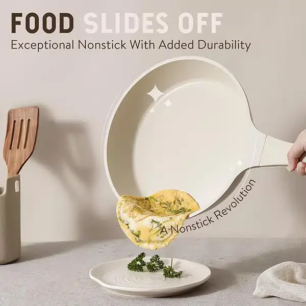 𝗦𝗶𝗺𝗽𝗹𝗶𝗳𝘆 𝘆𝗼𝘂𝗿 𝘁𝗮𝘀𝗸: Our outstanding nonstick cooking surface keeps the food sliding smoothly across the pan.