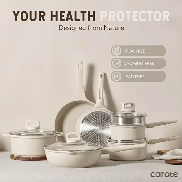 𝗪𝗼𝗿𝗿𝘆-𝗳𝗿𝗲𝗲 𝗦𝗲𝗿𝘃𝗶𝗰𝗲: Each CAROTE cookware passes strict multi inspection process. In case you received defect items caused by delivery, please don’t hesitate to reach out, You will be guaranteed to get 100% refund or a new replacement.