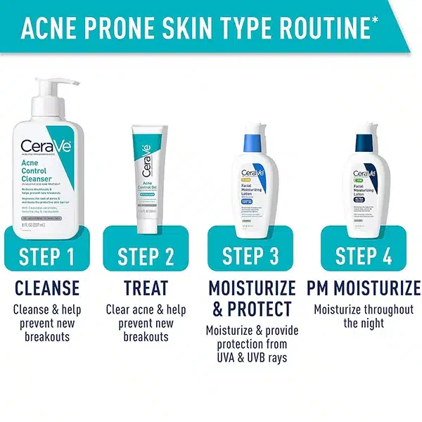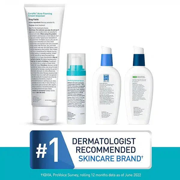 CeraVe is the #1 dermatologist-recommended cleanser brand for acne*, and our Acne Control Cleanser with 2% salicylic acid is formulated to clear acne, reduce blackheads and improve the appearance of pores, while purifying clay helps absorb excess oil.