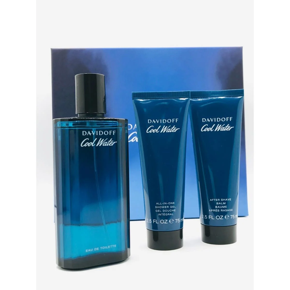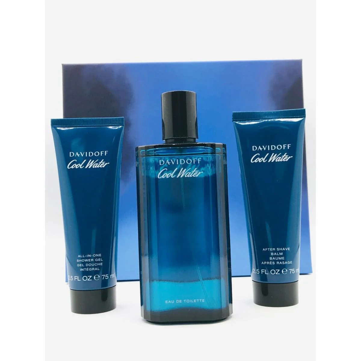 Davidoff Cool Water 3pc Set Cologne Spray 4.2 oz After Shave Balm and Shower Gel 2.5 oz