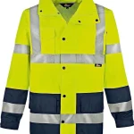 Class 3 waterproof sealed seams, zip cover with press studs, hood in collar, 2 large hip pockets, mobile phone pocket with Velcro fastener, security pocket