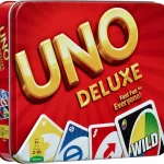 In the beloved card game UNO, you (or your team) are trying to be the first to score 500 points. You score points by being the first to get rid of all the cards in your hand, and action cards let you throw twists that make things more difficult for your opponents. See why this color coded card game has been a hit for so many years. When you're down to one card, don't forget to yell "UNO!" Game comes in a colorful, protective tin that stores the included 112-card deck plus instructions, scoring pad, pencil. For 2 to 10 players. Ages 7 and older.