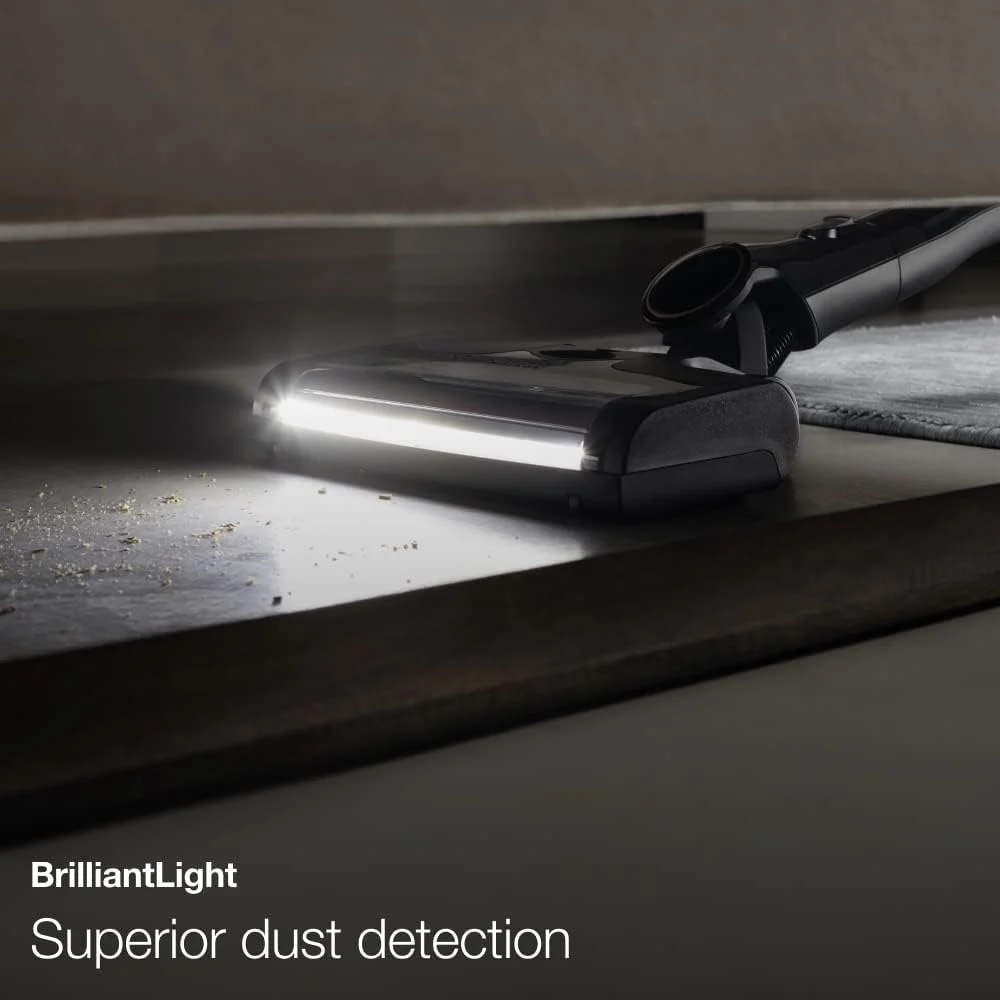 With extra-wide electric brush with automatic flooring detection and BrilliantLight LED light for optimal dust detection – for effortless and quick cleaning of all surfaces