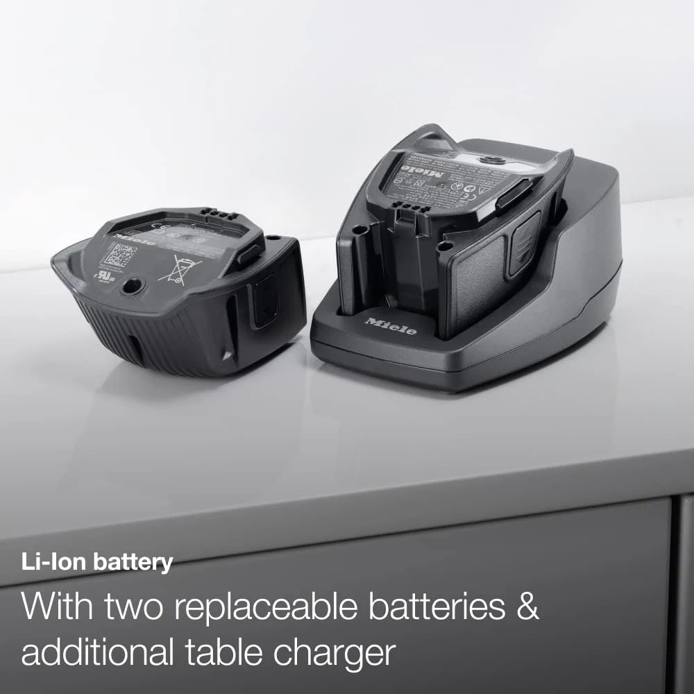 Up to 120 minutes running time (4) with 2 interchangeable Varta Li-ion batteries and 2 charging options – for cleaning particularly large surfaces without interruption