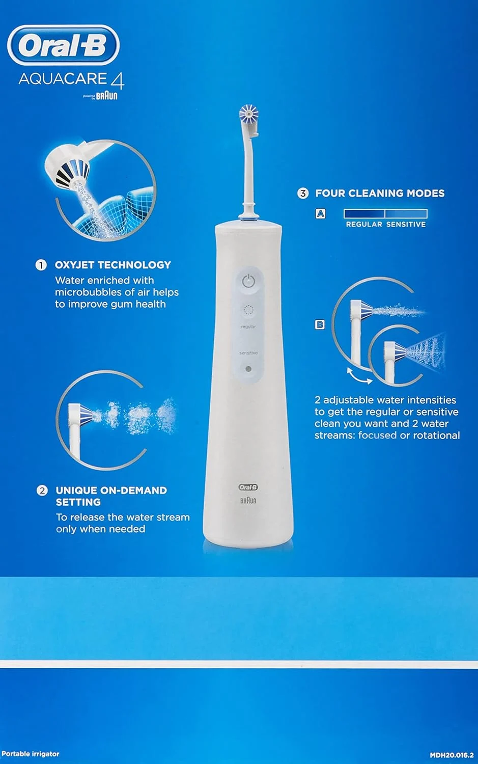 • Gentle water jet for a pleasant, yet effective cleaning of teeth and gums, ideal for people with sensitive teeth.