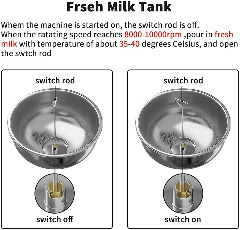 Efficient and Fast- The Cream Separator speeds up to 10500 rpm, makes the separation of the cream more thorough. The fat content of skimmed milk is less than 0.03%