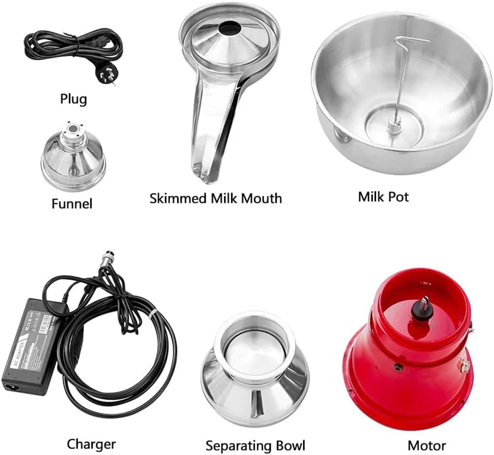 Premium Material – Most of the parts including drum, discs, motor casing are made of Aluminum alloy. The milk bowl, spouts are made of 304 stainless steel. The core device of the unit is made of high quality brass