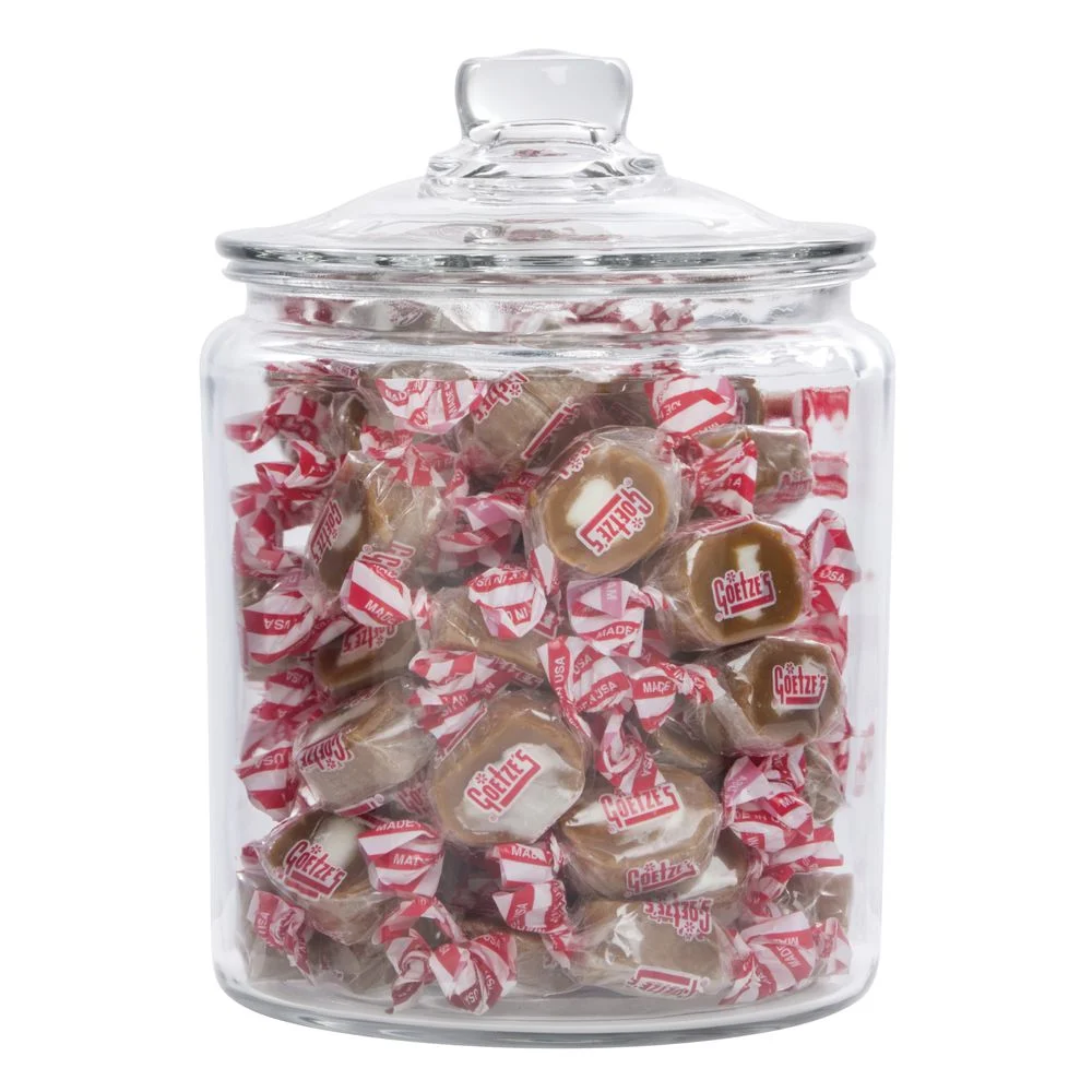 This glass display jar is a great way to merchandise all those little candies and packaged food items that are small. This product is a small glass jar that features a classic design with a .5 gallon capacity. This glass display jar will instantly add a stylish look and feel to any food display. This product can be used for pickles, candies, packaged cookies, and any other small packaged food item. This glass display jar is a must-have item for any commercial food-related business.