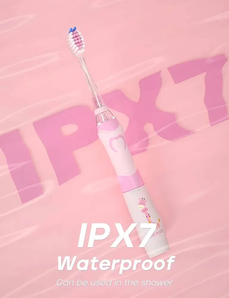 【IPX7 Waterproof】Children Power Toothbrushes can be used in the shower. Safe for children to use in the bathroom bath. Long battery life supported by AAA battery, Batteries not included in the package