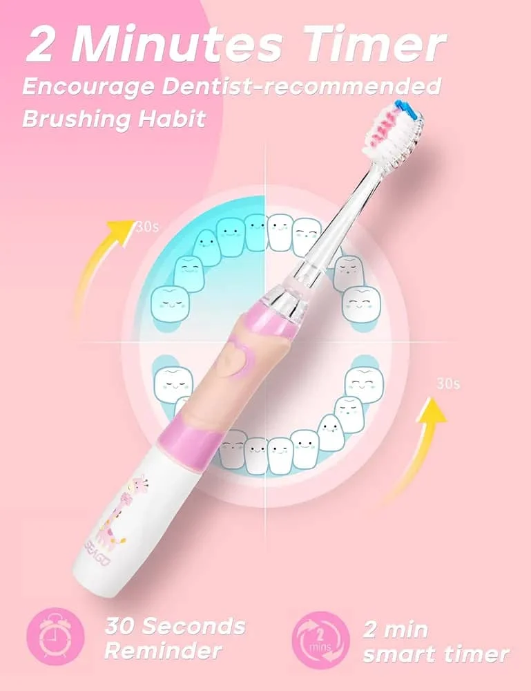 【2 Mins Smart Timer】2 Minutes Smart Timer and 30-second Interval guide you to brush for the dental professionals’ recommended brushing time in all areas of your mouth to ensure a complete clean. Helps children develop good brushing habits