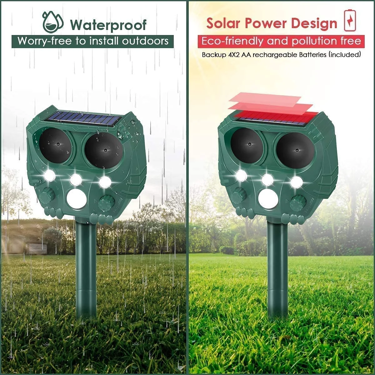 Weaterproof & Durable - Outdoor ultrasonic deterrence equipment is ideal for gardens, yards and farms. Waterproof to IPX4, compact and easy to carry for camping. Rugged hard plastic construction, resistant to rain, snow, ice, wind, suitable for any severe weather conditions.