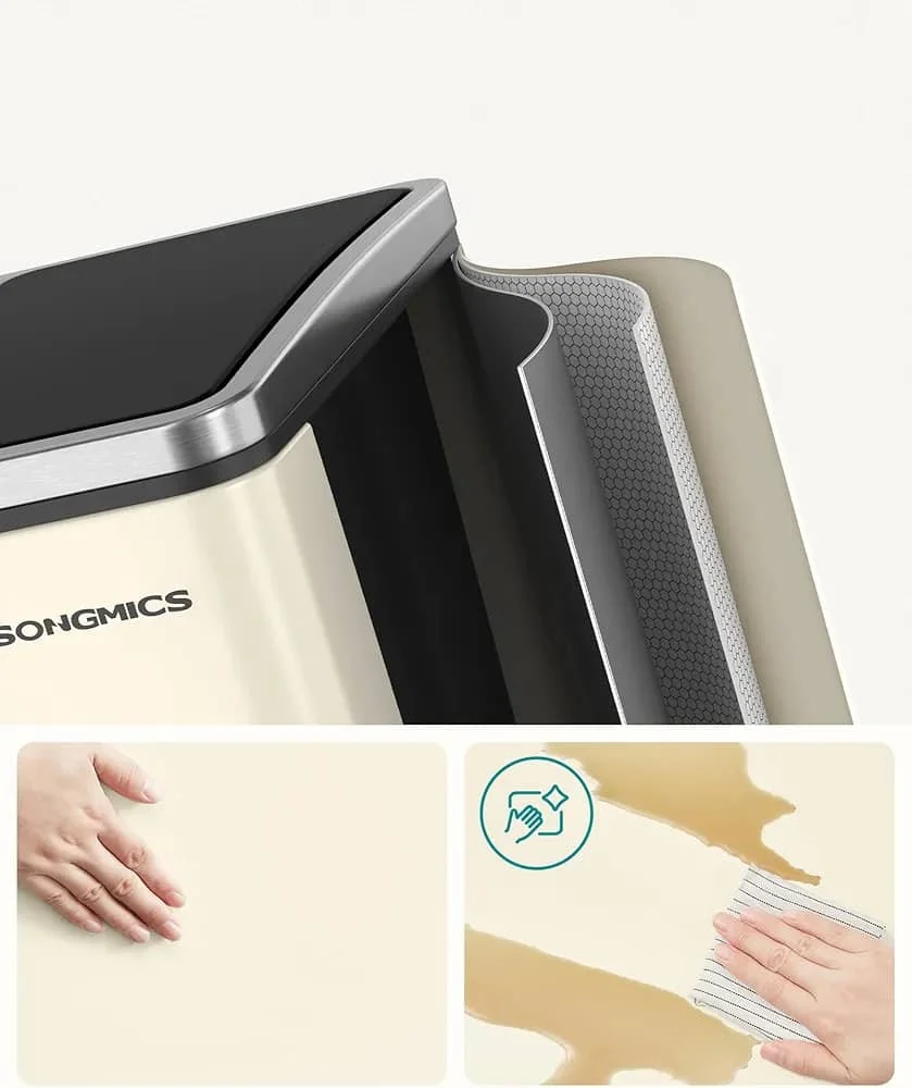 - [Easy Cleaning & Modern Design] The steel rubbish bin resists rust and fingerprints, which is also easy to clean; the sand beige finish combines with the ink black colour for a modern look that fits any kitchen decor