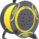 STANLEY Power Extension Cable Reel 50m with 4 Sockets, Overload Protection and Cable Guide, ESMA Certified