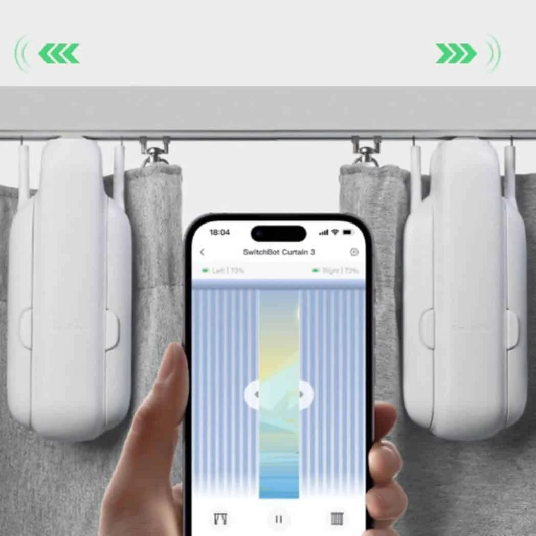 - Supports Matter: With SwitchBot Hub 2 (sold separately), Curtain 3 supports Matter and can be integrated with Apple HomeKit. Control your curtains via the Home App or using your HomePod/Apple Watch. You can also use with other SwitchBot devices for better automation and scene control. ※If your curtains open in the middle you need two units.